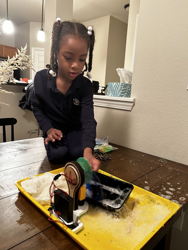 We created a bubble machine and it can get messy. It would be best to choose a place where you don’t mind water splashing everywhere.
